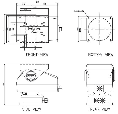 본 기기는 옥외에 카메라를 설치하여 보다 많은 곳을 감시하기 위해 상,하,좌,우 회전을 임의로 원격제어할 수 있어 보다 효율적인 감시를 위한장치이며, 교통정보, 주요시설, 외각 경비들의 시스템을 구성하여 감시목적으로 사용하는 기기이다